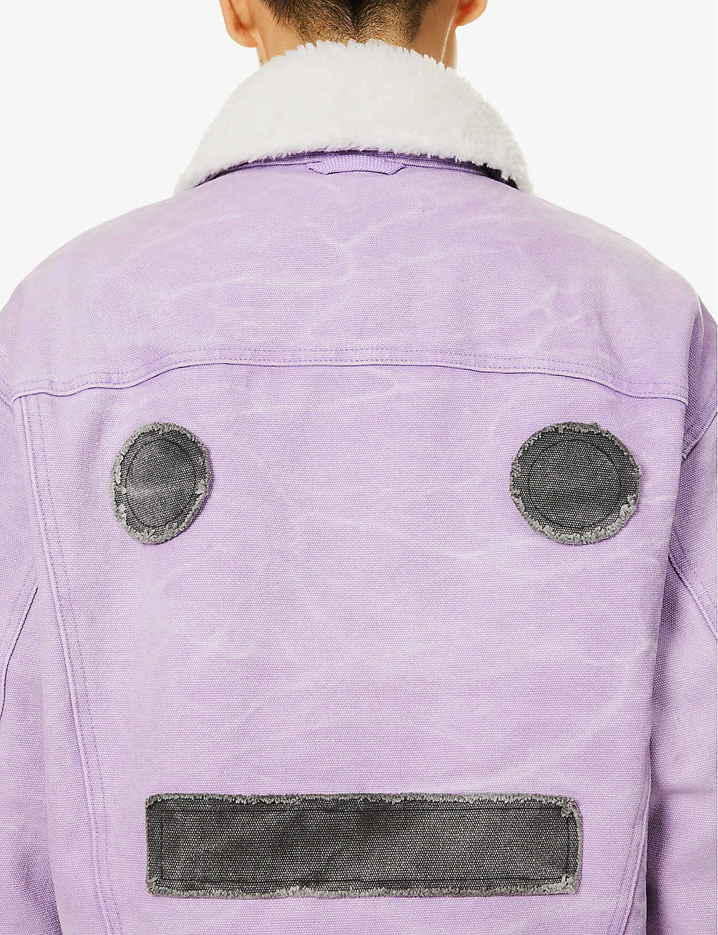- Regular fit, layered collar, long sleeves, buttoned sleeve hems, brand appliqué at chest, two buttoned flap pockets at chest, two slip pockets at front, contrast appliqué at back, hem adjusters, faded wash, quilted lining