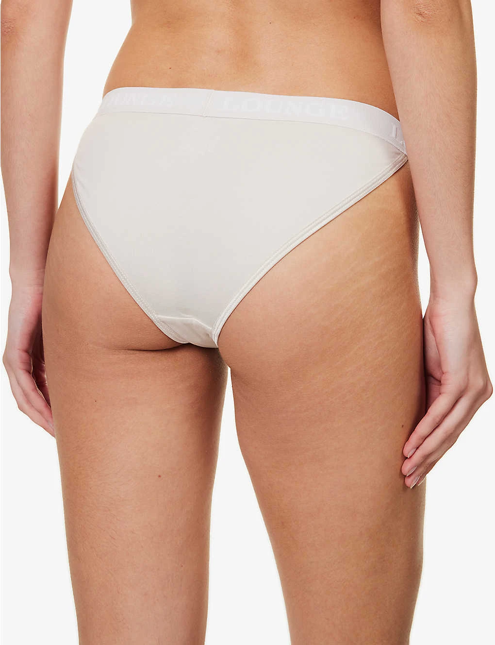 - Mid-rise, branded elasticated waistband, high leg, full coverage at back, lined gusset