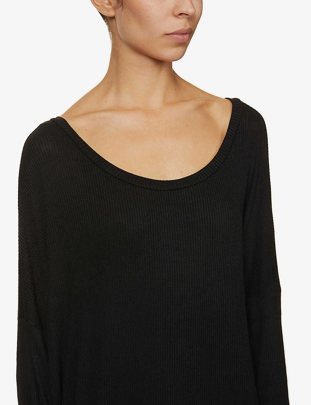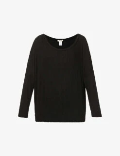 - Relaxed fit scoop neck, long sleeves, all-over ribbed texture