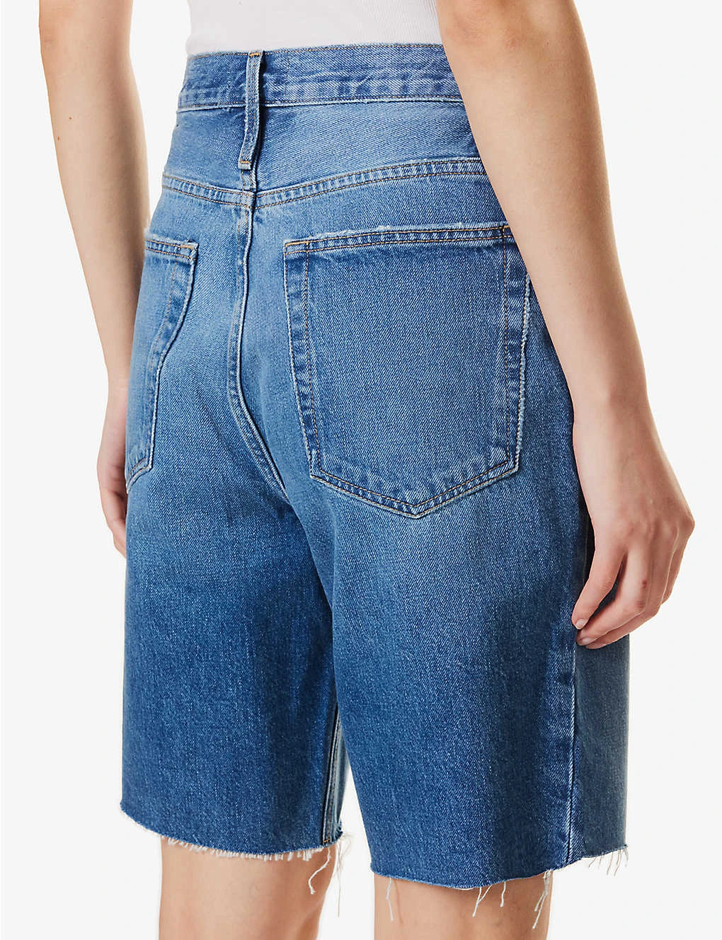Be the first to review “FRAME Bermuda Raw-hem High-rise Denim Shorts” Cancel reply