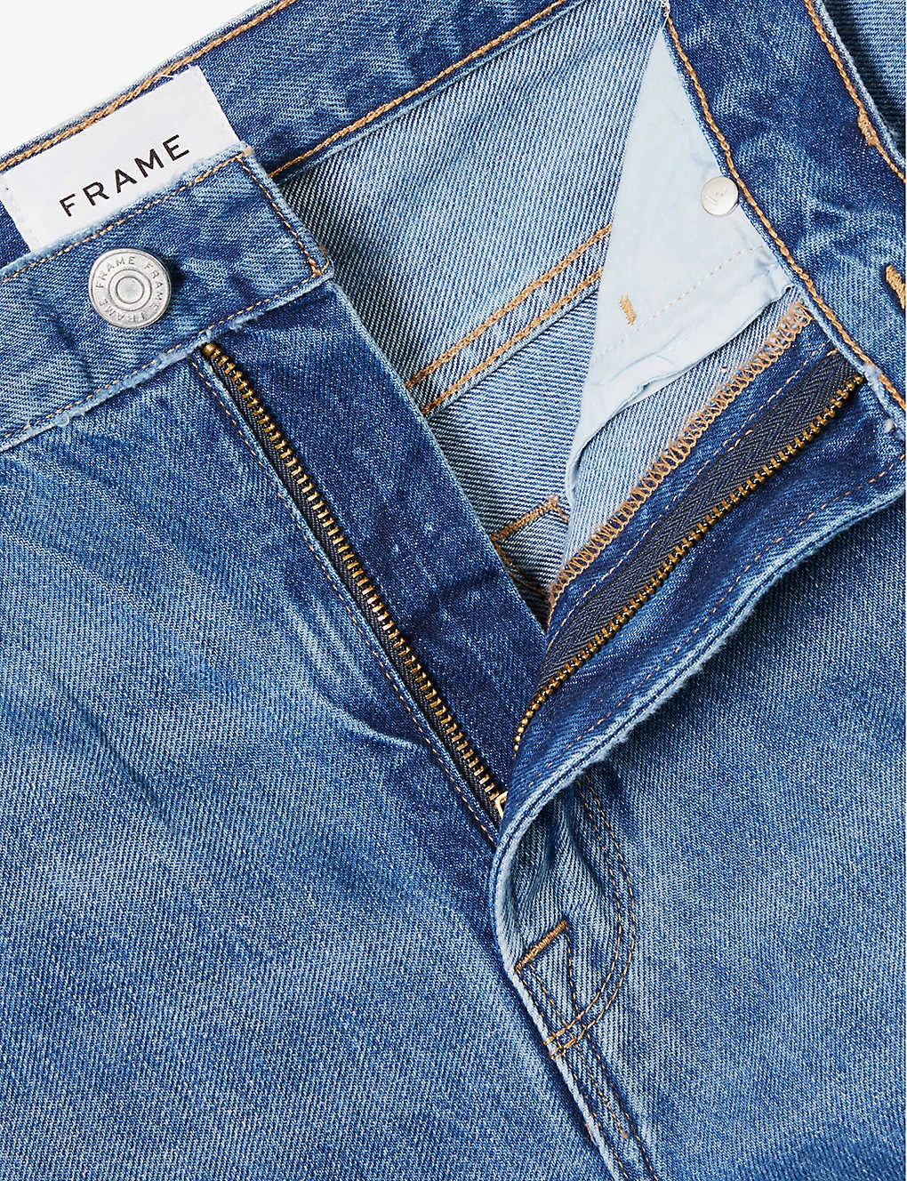 - Exposed button andconcealed zip-fly fastenings at front