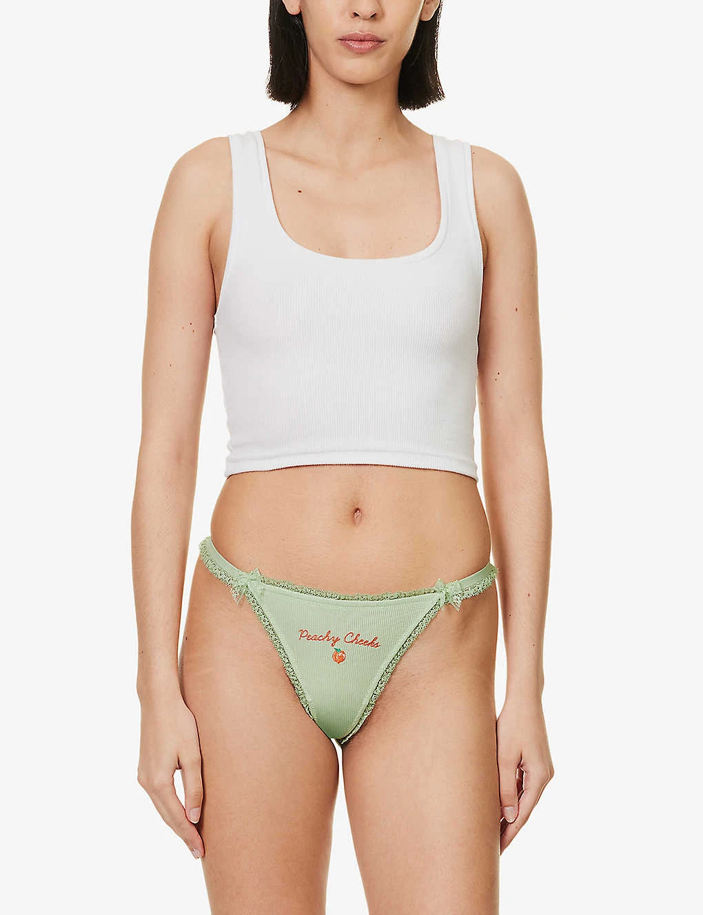 Be the first to review “Fruity Slogan-embroidered Stretch-jersey Thong” Cancel reply
