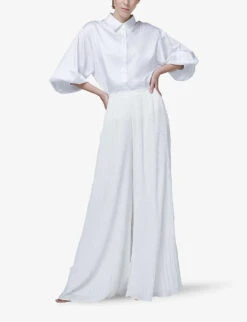 By Malina Candace Pearlescent-button Relaxed-fit Linen-blend Shirt