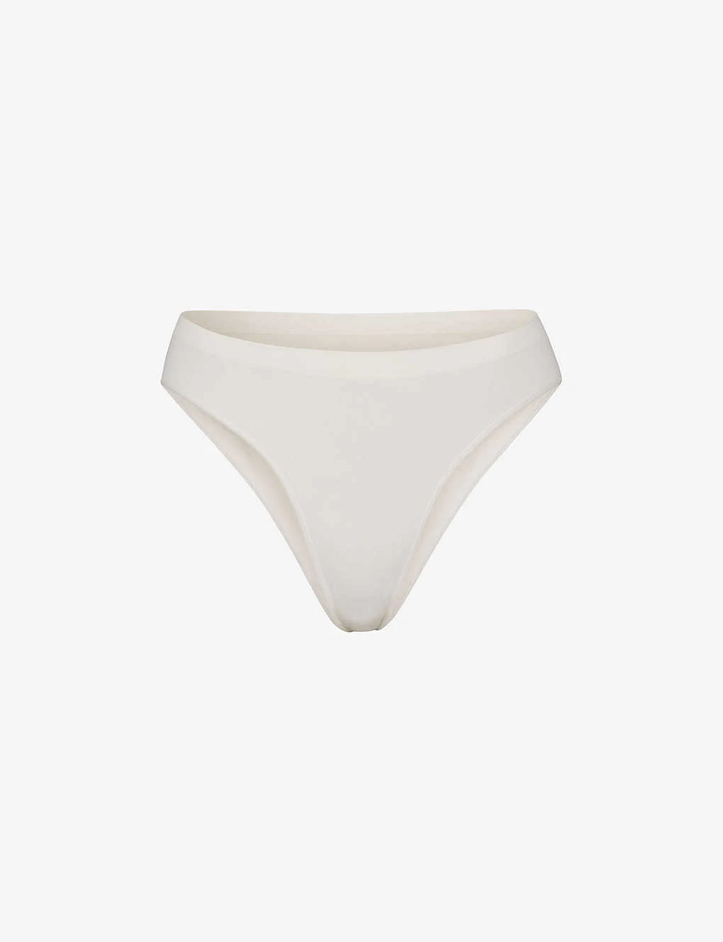 - Mid-rise, elasticated waistband, seamless, minimum back coverage