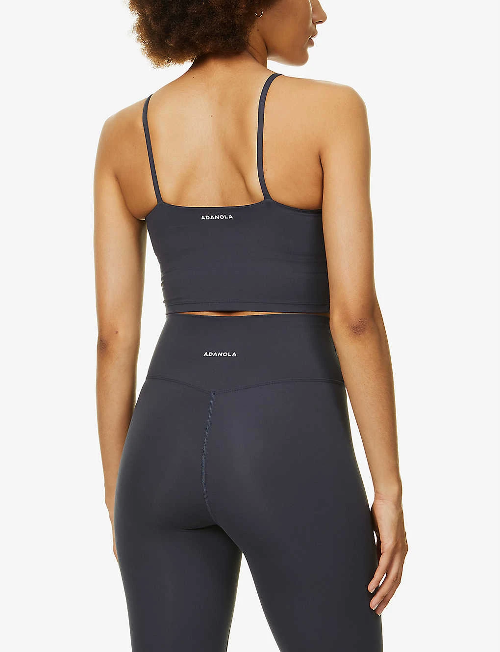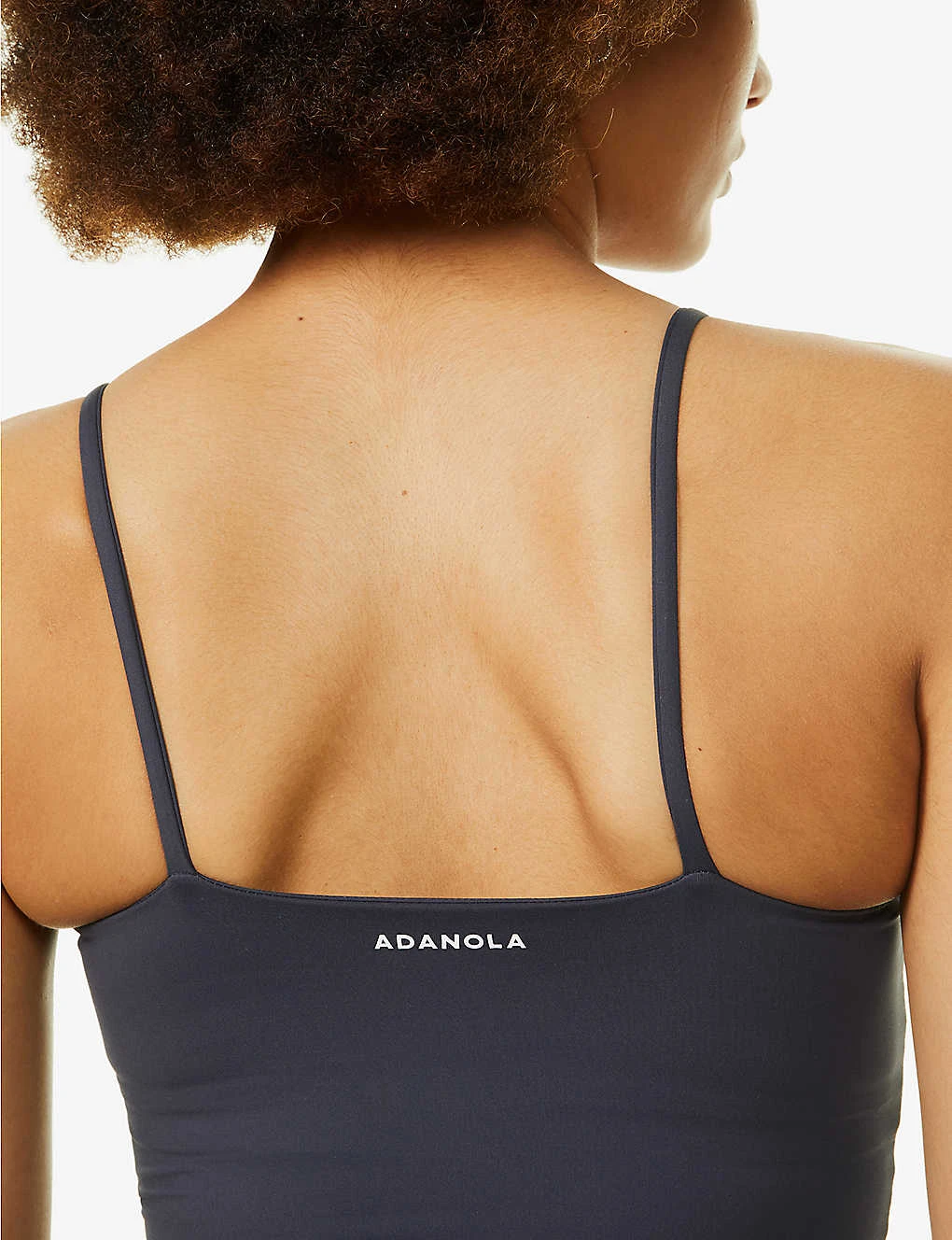 - Scoop neckline, spaghetti straps, seamless, padded bra insert, brand print at back