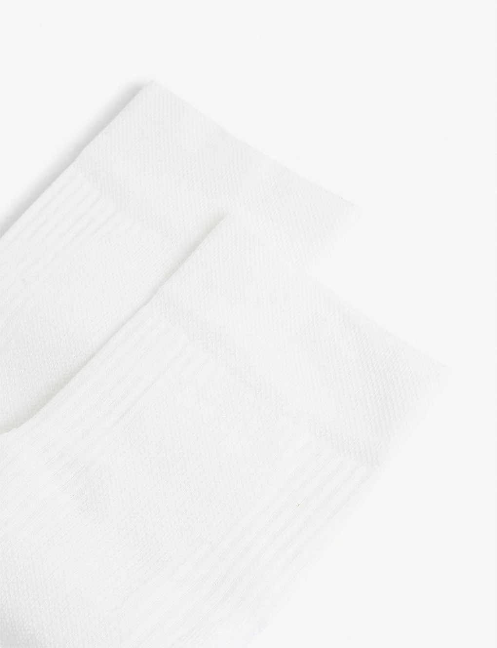 - Single pair, ribbed design, anatomical markings, logo at heel