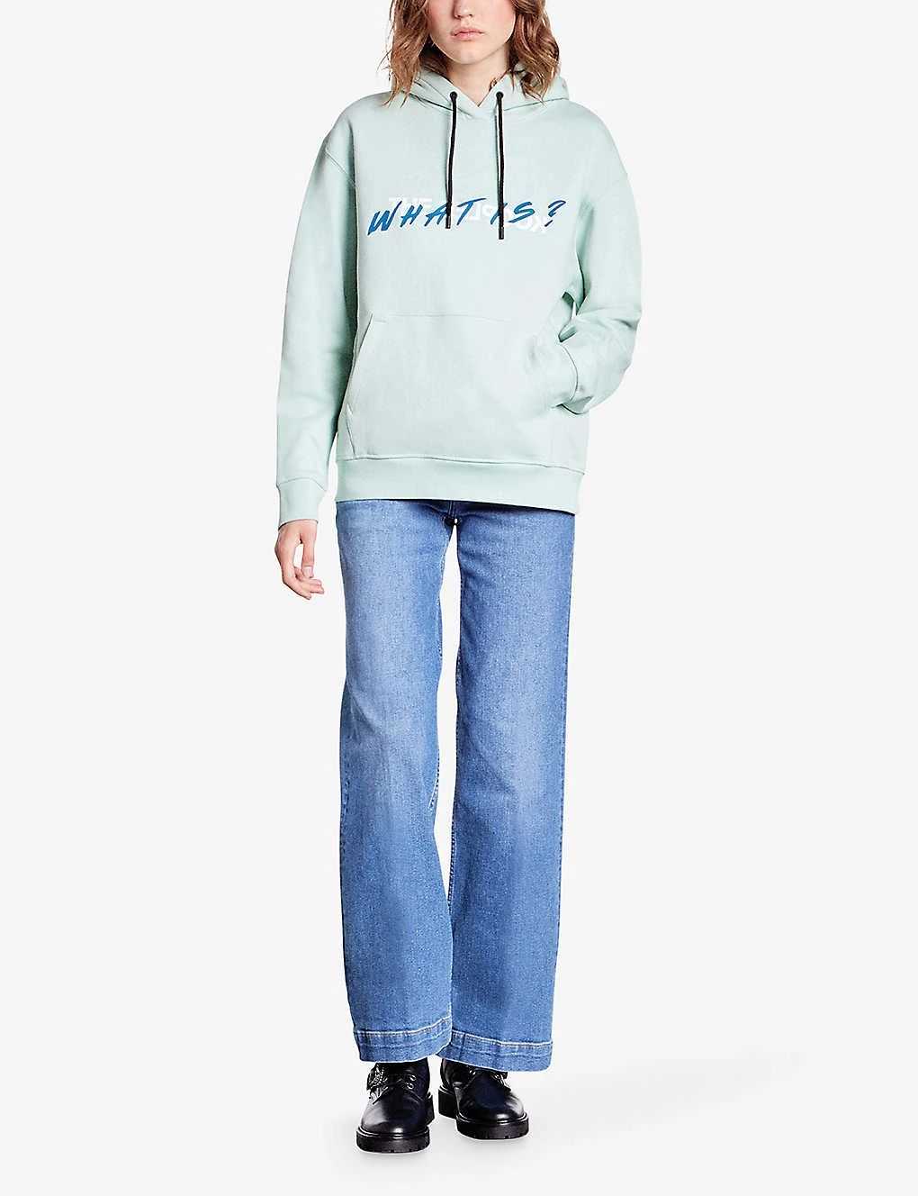 - Hooded, drawstring fastening, long sleeves, slogan-print at the front, ribbed hem, relaxed fit