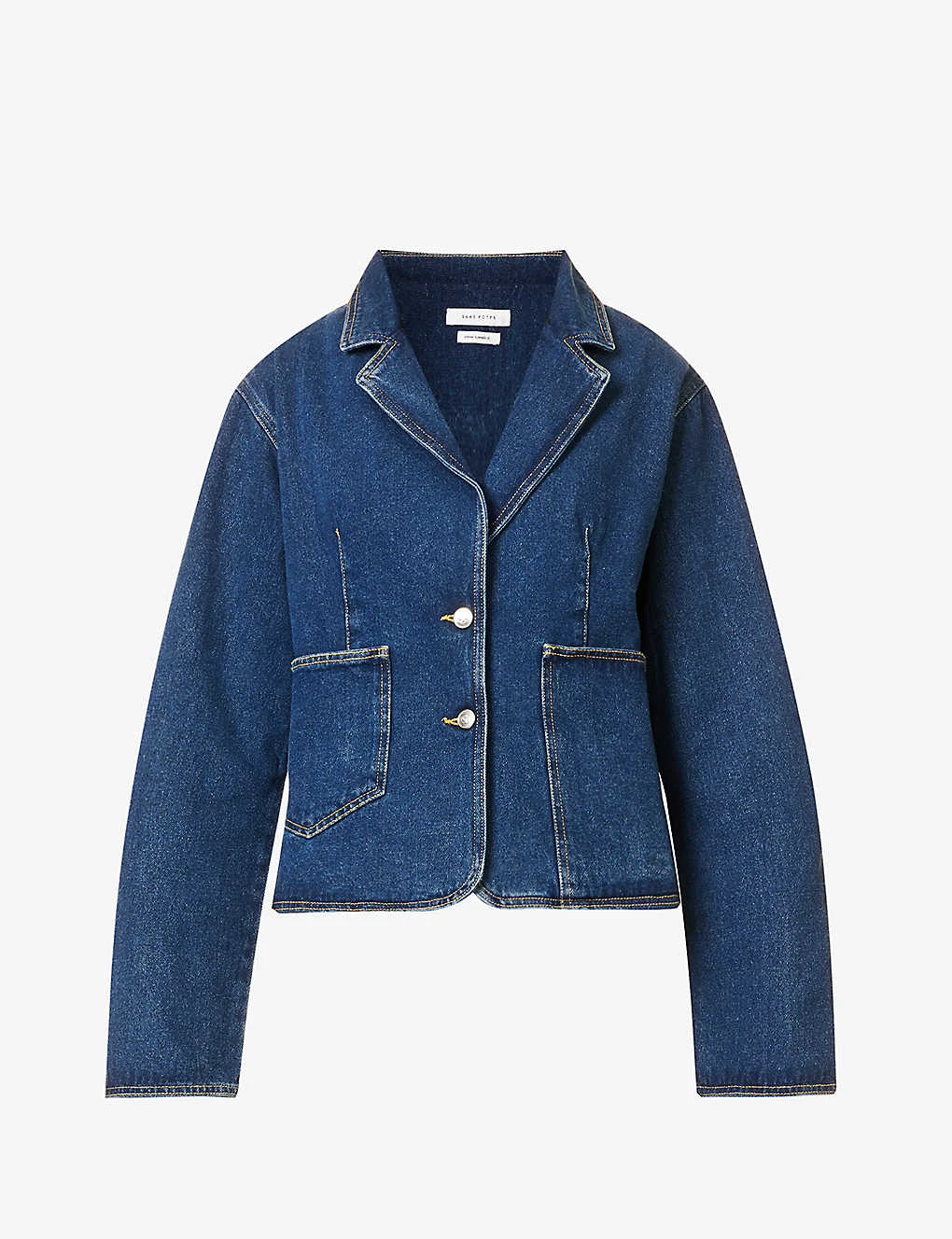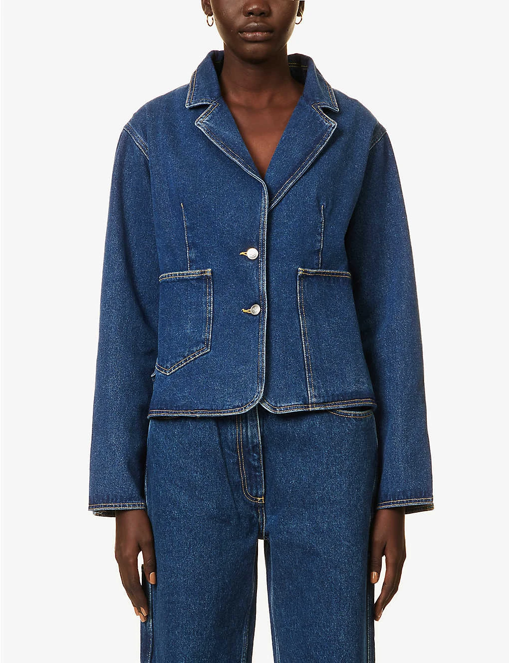 Be the first to review “Yanne Single-breasted Organic-cotton Denim Blazer” Cancel reply